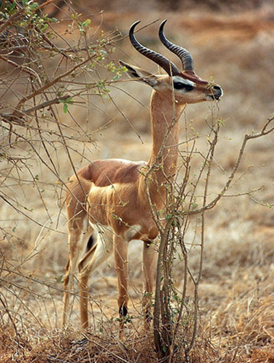 เกรินุก หรือ แอนทิโลปคอยีราฟ เจ้าสัตว์ตาสวยมีหน้าตาที่ใกล้เคียงกับกวาง ทั้งความมุ้งมิ้งและดวงตาสวยกลมโตนั้น โดยจะมีใบหูยาวลักษณะชี้กางออก มีแนวขนเป็นเส้นสีดำขึ้นบริเวณใบหูด้านใน มีขายาว-คอยาวคล้ายยีราฟ มีขนสีน้ำตาลบริเวณลำตัว ท้องมีขนสีขาว และมีขนสีน้ำตาลแดงเข้มบริเวณแผ่นหลัง มีลักษณะการกินอาหารที่แปลกแตกต่างจากสัตว์อื่น ๆ ในวงศ์เดียวกัน นั่นก็คือ มักจะยืนสองขาเพื่อเขย่งขึ้นใช้ปากแทะกัดเล็มกินใบไม้-ยอดไม้ในที่สูงซึ่งก็จะคล้ายกันกับท่าทางการกินอาหารของยีราฟนั่นเอง